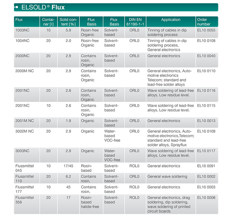 - Flux Elsold - Paste flux - Rework flux fluid - Rework flux pasty - Flux solar industry