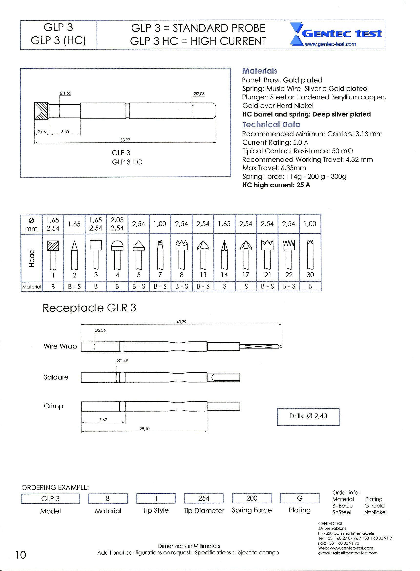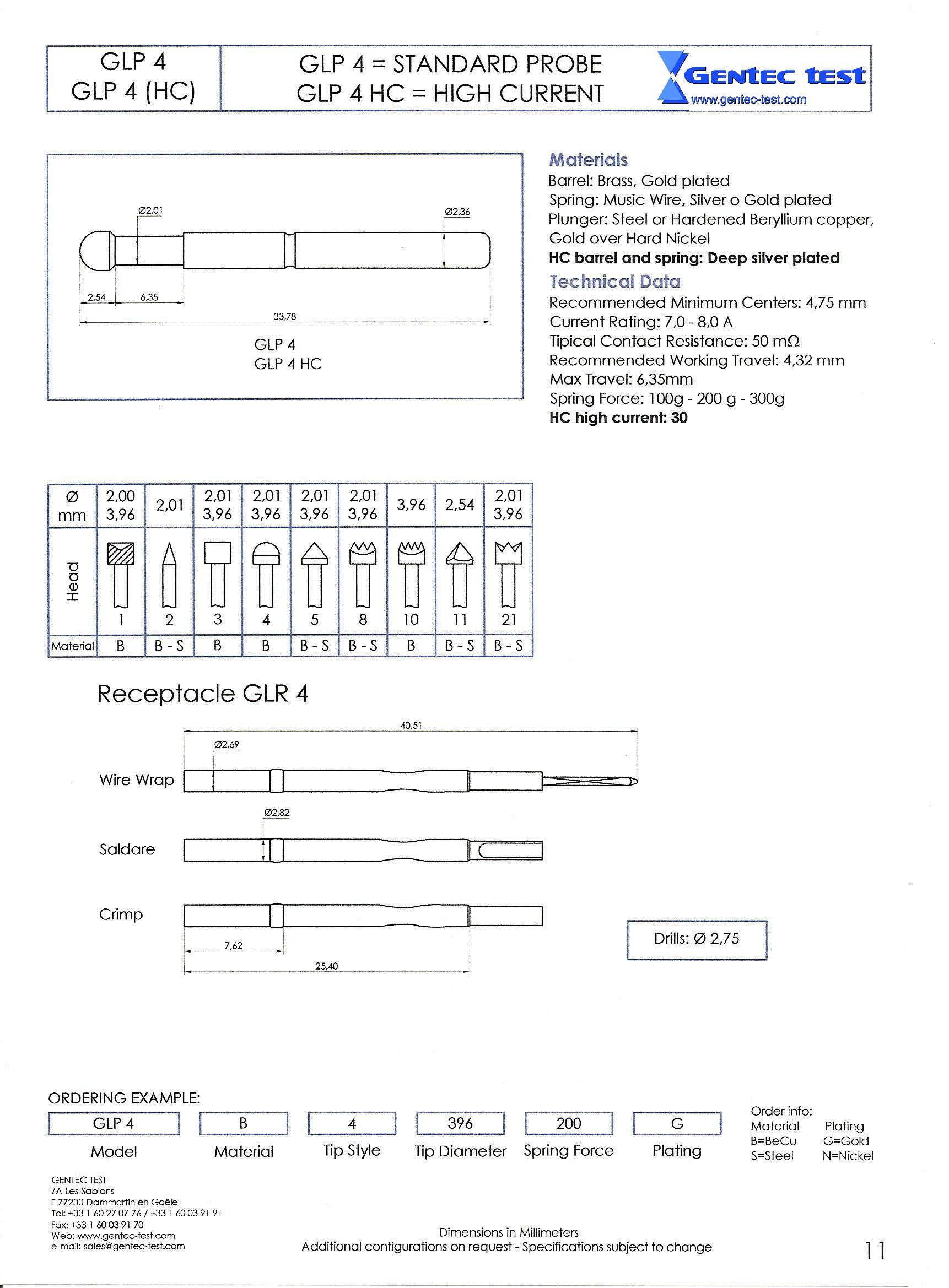 | Gentec fournit un grand choix de pointes de test à ressort pour toutes les applications, de taille et style standard aux produits spécifiques. | |||||||